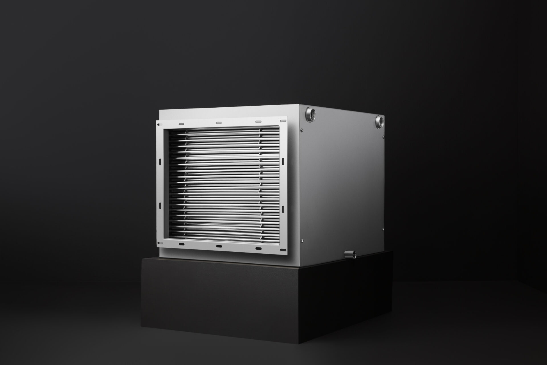 Unlike conventional finned heat exchangers, Lepido’s geometry uses larger spacing, allowing pollutants to travel with the air and avoid buildup on surfaces.